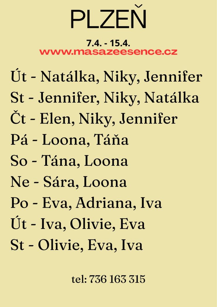 | Pátek | Na dotaz |