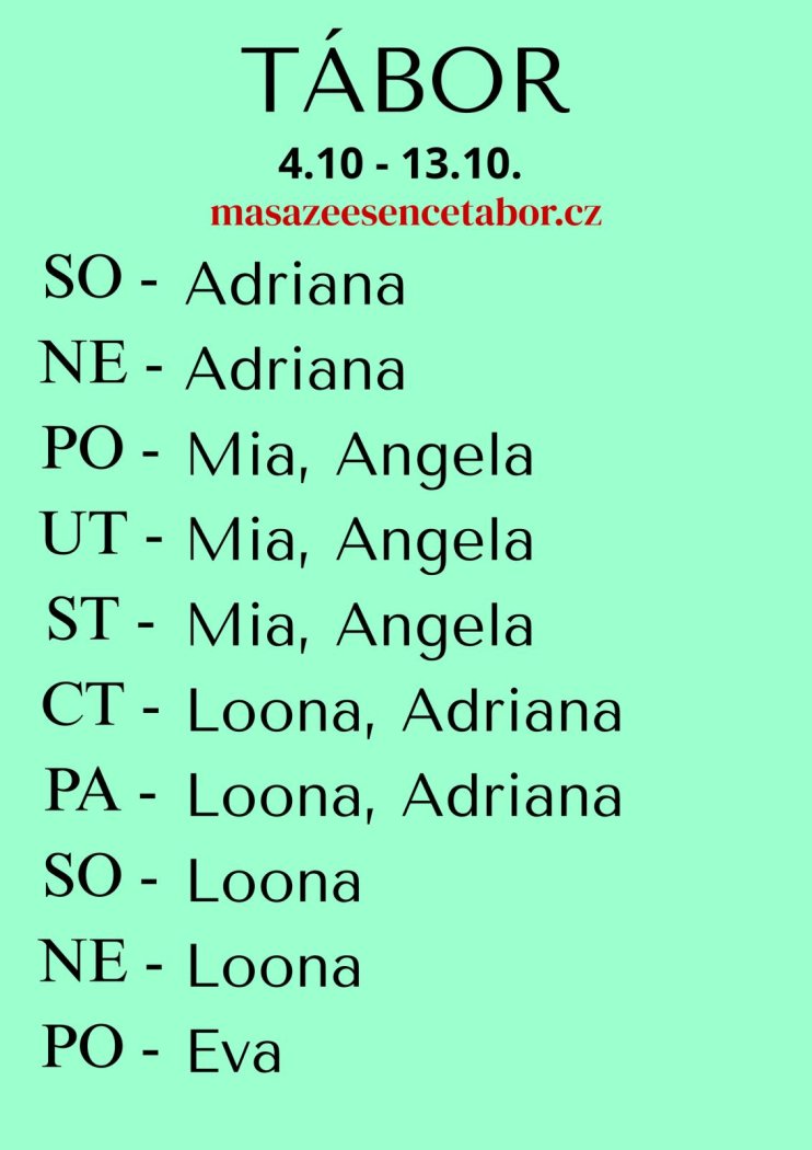 | Pondělí | Na dotaz |