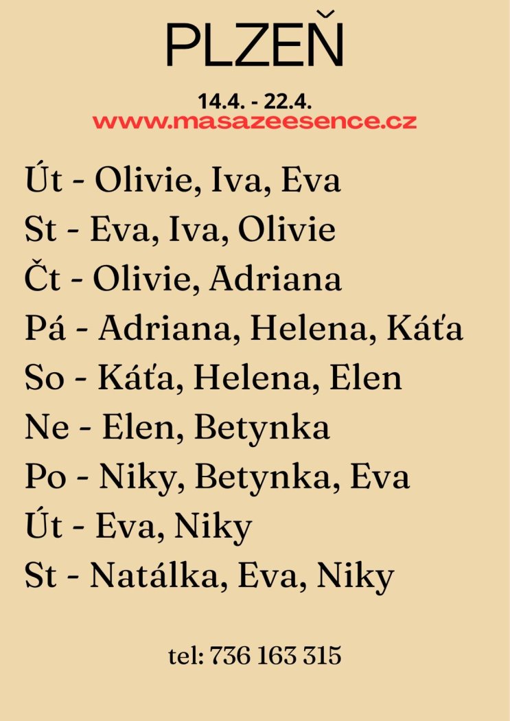 | Čtvrtek | Na dotaz |